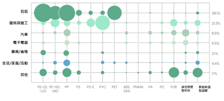 圖4、歐洲塑膠協會–塑膠原料依應用與類型劃分需求量氣泡圖