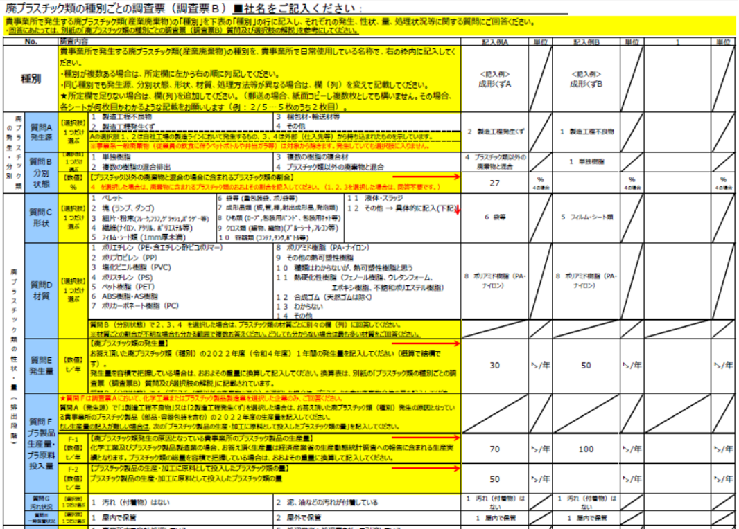 圖6 日本塑膠循環利用協會產業調查問卷 (僅節錄部分)